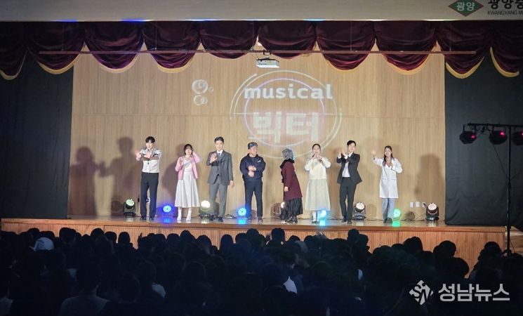 (성남뉴스) 광진구가 관내 학생들에게 특별한 문화예술 경험을 제공하기 위해 추진한 학교로 찾아가는 뮤지컬 ‘빅터’ 공연이 학생들의 열띤 호응이 이어지며 마무리 단계에 접어들었다.