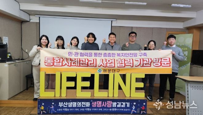 (성남뉴스) 해운대구는 통합사례관리 사업의 효과적인 추진과 지역사회 복지안전망 강화를 위해 부산생명의전화와 부산광역시사회서비스원을 방문하고, 민·관 협력 기반의 연계 방안을 논의했다고 밝혔다.
