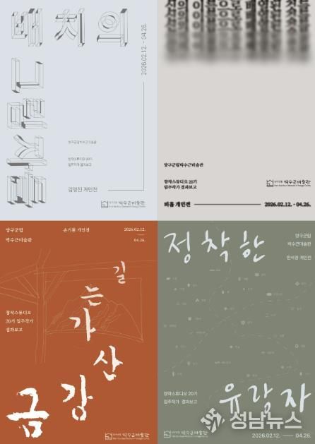 (성남뉴스) 양구군립박수근미술관은 오는 2월 12일부터 4월 26일까지 양구군립박수근미술관 내 현대미술관 및 박수근 파빌리온에서 《박수근미술관 창작스튜디오 20기 입주작가 결과보고 개인전》을 개최한다.