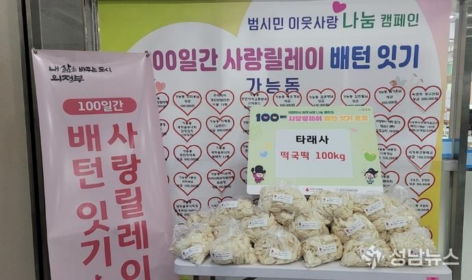 (성남뉴스) 의정부시 가능동주민센터는 2월 9일 한국불교태고종 타래사가 떡국떡 100kg를 기탁했다고 밝혔다.