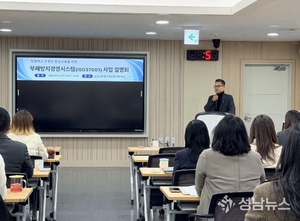 (성남뉴스) 충남교육청은 작년 5월 국제표준 부패방지경영시스템(ISO 37001) 최초 인증 취득 이후, 제도의 안정적 정착과 실효성 제고를 위해 운영 내재화 중심의 후속 운영 사업을 본격 추진한다고 밝혔다.