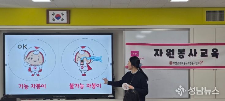 (성남뉴스) 부산 중구자원봉사센터는 관내 초등학교 4곳의 6학년 학생 150여 명을 대상으로 2월 2일부터 10일까지 ‘예비 중학생 자원봉사활동 기초교육’을 실시했다.