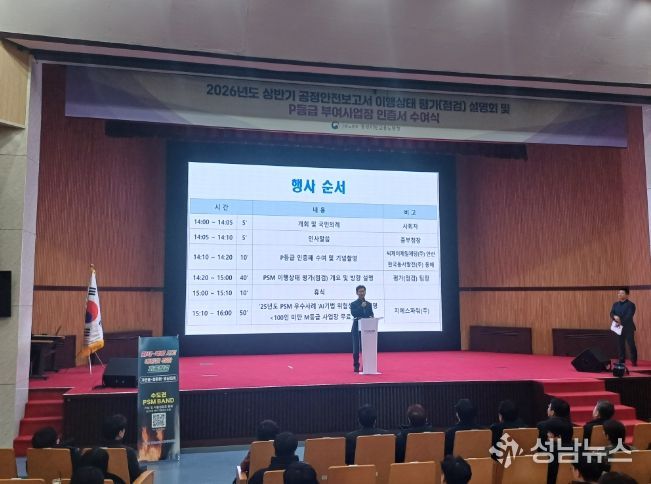 (성남뉴스) 중부지방노동청 수도권 중대산업사고 예방센터는 2월 11일 오후 2시부터 안산시 단원구 소재 중소벤처기업연수원 대강당에서 '2026년 상반기 공정안전관리(PSM) 이행상태 평가(점검) 사업 설명회'를 개최했다.