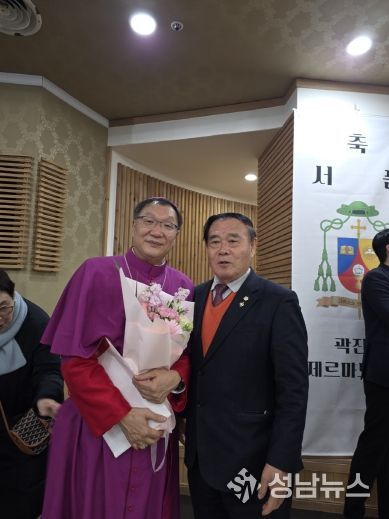(성남뉴스) 수원특례시의회 이재식 의장은 2월 11일(수) 오후 2시, 장안구 정자동 주교좌성당에서 열린 천주교 수원교구 곽진상 제르마노 주교 서품식에 참석해 신임 보좌주교의 서품을 축하했다.