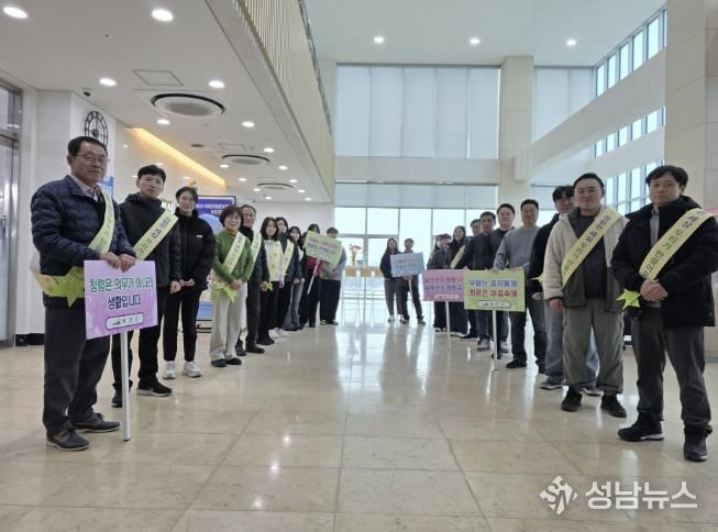 (성남뉴스) 예산군 공공시설사업소는 청렴한 공직문화 조성과 청렴의식 확산을 위해 지난 11일 1100년기념관 1층에서 전 직원이 참여한 가운데 청렴 캠페인을 실시했다.