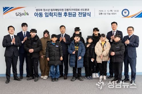 (성남뉴스) 법무부 청소년 범죄예방위원 강릉지구위원회(회장 이경호, 선도분과 위원장 김영길)는 12일 강릉시청에서 드림스타트 아동을 위한 입학지원 후원금 전달식을 가졌다.