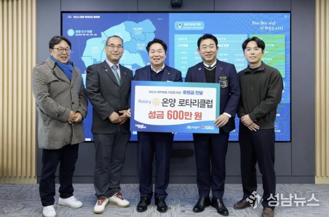 (성남뉴스) 온양 로타리클럽은 12일 아산시(시장 오세현)를 방문해 지역 내 취약계층 지원을 위한 성금 600만 원을 기탁했다.