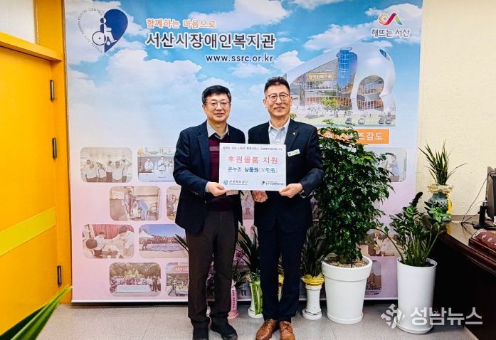 (성남뉴스) 근로복지공단 서산지사가 2월 12일, 설 명절을 앞두고 서산시장애인복지관을 찾아 지역 장애인 가족들에게 조금이나마 도움이 되기를 바라는 뜻으로 온누리상품권 30만 원을 전달했다.