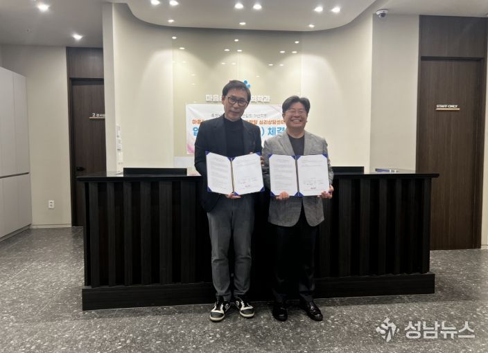(성남뉴스) 충청남도어린이집연합회 아산지회(회장 박수용)와 마음&정신건강의학과의원 및 아동발달센터(원장 이승직)는 지난 12일 아산시 탕정면 소재 마음&정신건강의학과에서 지역 내 영유아의 건강한 성장과 조기 발달 지원을 위한 업무협약(MOU)을 체결했다.