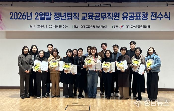 (성남뉴스) 경기도수원교육지원청은 경기도교육청평생학습관 2층 강당에서 2026년 2월 말 정년퇴직 교육공무직원 유공 표창 전수식을 개최했다.
