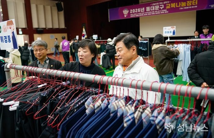 (성남뉴스) 서울 동대문구는 새학기를 앞두고 학부모의 교복 구매 부담을 덜기 위해 21일 구청 2층 다목적강당에서 ‘2026년 교복나눔장터’를 열었다고 밝혔다. 행사장은 개장 시간부터 교복을 고르려는 학생·학부모들로 붐볐고, ‘필요한 만큼만, 저렴하게’라는 장터 취지에 맞춰 차분히 구매가 이뤄졌다고 구는 전했다.