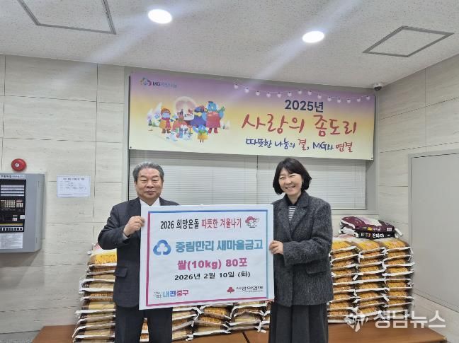 지난 10일, 새마을금고는 10kg의 백미 80포와 성금 100만원을 중림동 주민센터에 기탁했다. 백미는 중림동 내 경로당과 쪽방 주민을 지원하는 ‘한사랑공동체’와 저소득 가정 등에 전달돼 이웃들의 식탁을 든든하게 채웠다. 또한 성금은 복지 사각지대에 놓인 20가구에 각 5만 원씩 지원됐다.