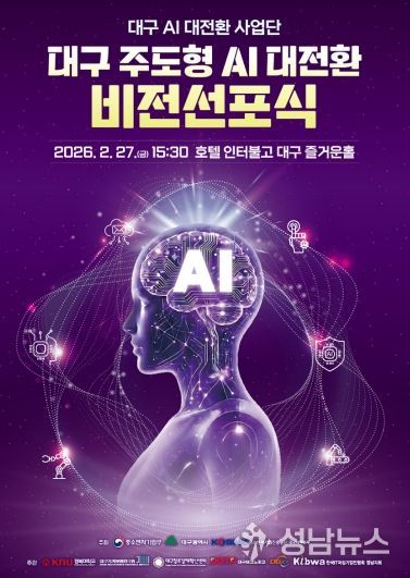 (성남뉴스) 대구광역시는 2월 27일 호텔 인터불고 대구에서 ‘대구 주도형 AI 대전환 사업단 출범 및 비전 선포식’을 개최한다.