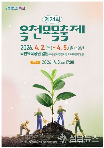 (성남뉴스) 따스한 봄기운이 완연한 가운데, 제24회 옥천묘목축제가 오는 4월 2일부터 5일까지 4일간 옥천묘목공원(옥천군 이원면 이원로 828) 일원에서 열린다.