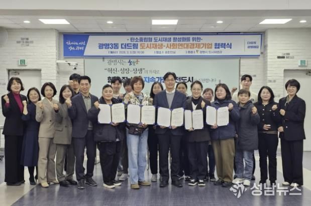 시는 3일 시청 중회의실에서 광명3동 더드림 도시재생사업의 일환으로 ‘탄소로운 팝업’ 활성화를 위한 협력식을 열고, 주민 참여형 탄소중립 실천 모델을 현장에 적용하기 위한 협력체계를 구축했다.