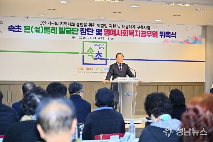 (성남뉴스) 속초시는 3월 4일 시청 대회의실에서 ‘속초 온(溫)둘레’ 발굴단 창단 및 명예사회복지공무원 위촉식을 개최했다.