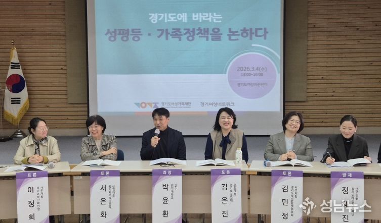 (성남뉴스) 경기도여성가족재단이 4일 ‘경기도에 바라는 성평등·가족 정책을 논하다’를 주제로 토론회를 열고 경기도 성평등 및 가족분야 정책방향을 논의했다.