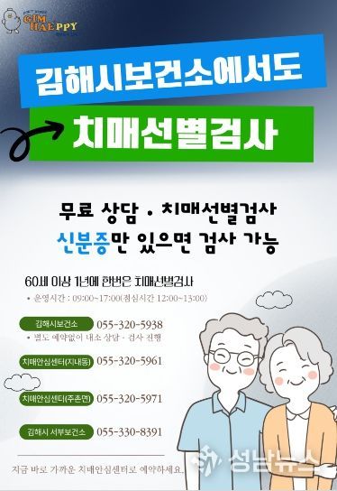 (성남뉴스) 김해시는 김해시보건소에서도 치매선별검사를 받을 수 있다고 6일 밝혔다.
