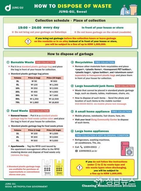 특히, 유학생들이 실수하기 쉬운 ‘토요일 및 매월 마지막 주 수요일 배출 금지’ 규정과 배출방법 위반에 따른 과태료 기준 등 주의사항을 집중적으로 다뤘다.