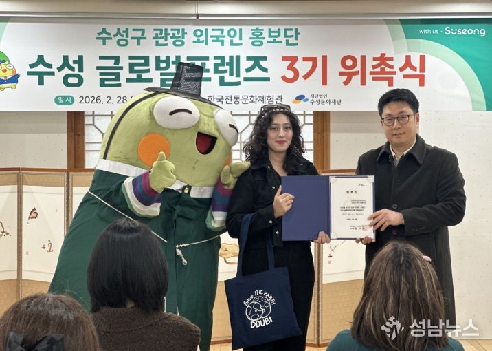 (성남뉴스) 대구 수성문화재단(이사장 김대권)은 지난달 28일 한국전통문화체험관에서 수성구 관광 외국인 홍보단 ‘수성 글로벌 프렌즈 3기’를 위촉했다고 밝혔다.