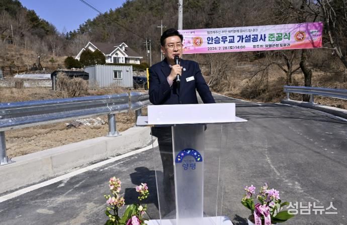 (성남뉴스) 양평군은 양동면 석곡2리 일원에 위치한 ‘안승우교 재가설공사’를 성공적으로 마무리하고, 지난 2월 28일 준공식을 개최했다.