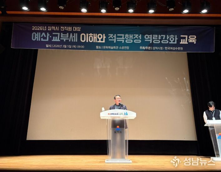 (성남뉴스) 삼척시는 3월 5일 문화예술회관 소공연장에서 전 직원을 대상으로 ‘예산·교부세 이해와 적극행정 역량강화 교육’을 실시했다.