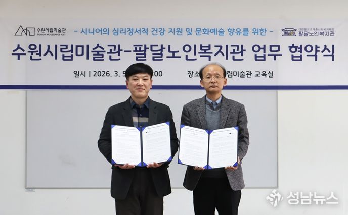 (성남뉴스) 경기도 수원시립미술관과 수원시 팔달노인복지관은 5일 관내 시니어의 문화예술 향유 활성화를 위한 업무협약을 체결했다.