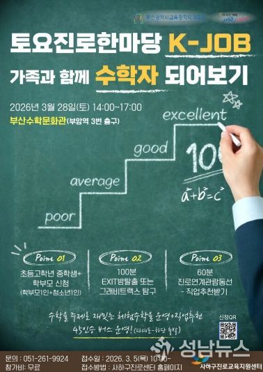 (성남뉴스) 사하구진로교육지원센터는 미래 직업 세계에 대한 이해를 증진하고 체험을 통해 다양한 직업 탐색 기회를 제공하고자 매월 '토요 진로한마당'을 운영한다.