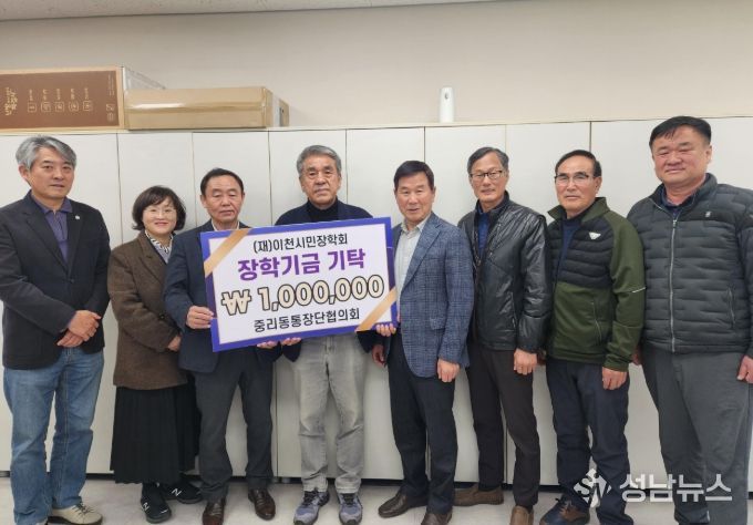 (성남뉴스) 중리동 통장단협의회는 지난 3월 4일 지역 인재 육성을 위해 이천시민장학재단에 장학금 100만 원을 기탁했다.