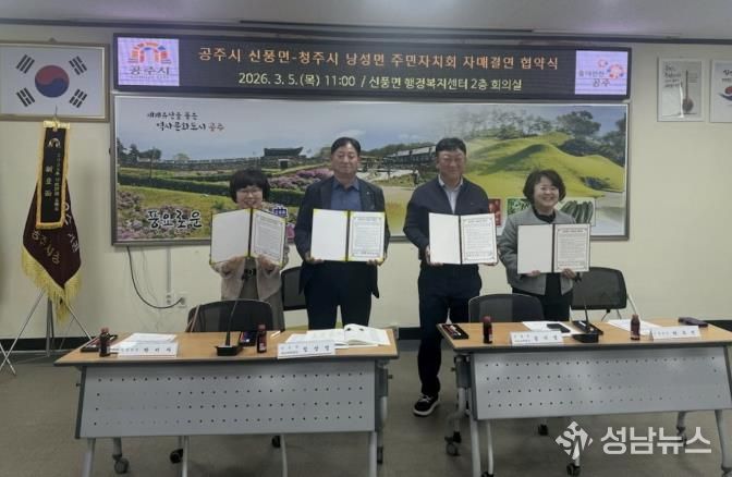 (성남뉴스) 공주시 신풍면은 지난 5일 신풍면 주민자치회와 청주시 낭성면 주민자치위원회가 자매결연 협약을 체결했다고 밝혔다.