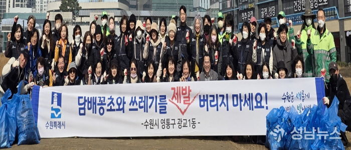 (성남뉴스) 영통구 광교1동 행정복지센터는 지난 3월 5일 통장협의회와 환경관리원 등 60여 명이 참여한 가운데 무단투기 지역을 중심으로 봄맞이 환경정비 활동을 실시했다.