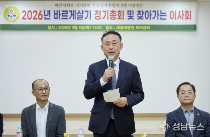 (성남뉴스) 지난 3월 5일 세종대왕면 복지회관에서 세종대왕면 바르게살기운동 위원회 정기총회가 개최됐다. 이날 총회에는 이충우 여주시장을 비롯해 박시선 여주시의회 의원, 김희수 세종대왕면장, 심덕보 위원장을 비롯한 바르게살기 운동 회원 등 30여 명이 참석해 단체 운영과 지역사회 발전 방안을 논의했다.