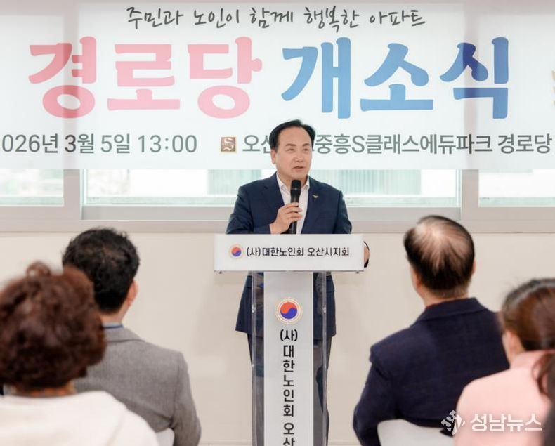 (성남뉴스) 오산시는 지난 5일 세교 중흥S-클래스 에듀파크 아파트 내에서 ‘세교2 중흥에듀파크 경로당’ 개소식을 개최했다고 밝혔다.