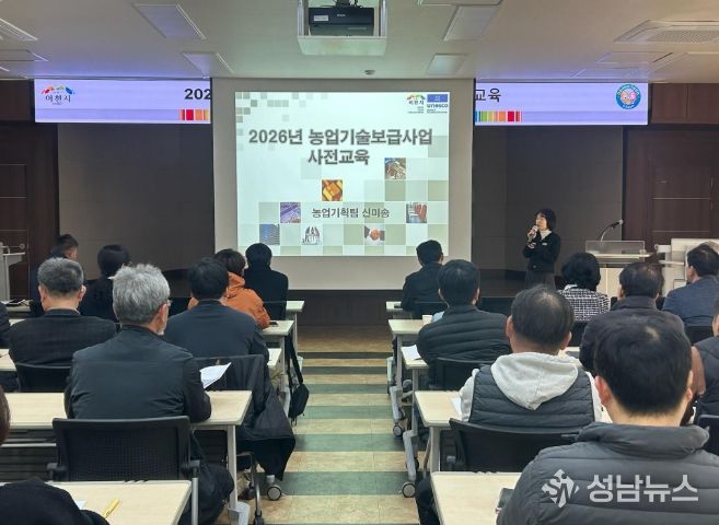 (성남뉴스) 이천시농업기술센터는 지난 5일 ‘2026년 농업기술보급 시범사업’ 선정자 50여 명을 대상으로 성공적인 사업추진을 위한 사전교육을 실시하며 본격적인 사업 착수를 알렸다.