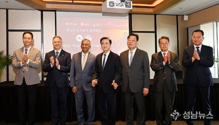 (성남뉴스) 태안군이 6일 싱가포르 스위소텔 더 스탬포드 호텔에서 뷔나그룹과 1조 원대 재생에너지(해상풍력) 투자협약을 맺고 친환경 에너지 산업 중심지로의 도약에 나섰다.