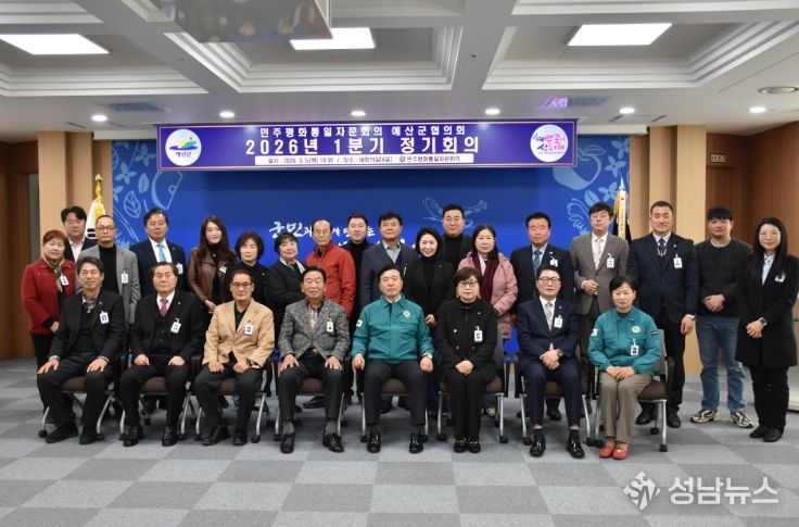(성남뉴스) 민주평화통일자문회의 예산군협의회(협의회장 진명희)는 지난 3월 5일 오전 10시 30분 군청 대회의실에서 예산군수와 자문위원 등 33명이 참석한 가운데 ‘한반도 평화공존을 위한 대내외 정책 추진방향’을 주제로 2026년 1분기 정기회의를 개최했다.