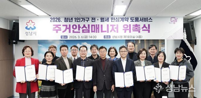 (성남뉴스) 성남시는 전월세 계약 경험이 부족한 1인 가구 청년층을 돕기 위해 현직 공인중개사 15명을 ‘주거 안심 매니저’로 위촉했다고 6일 밝혔다.