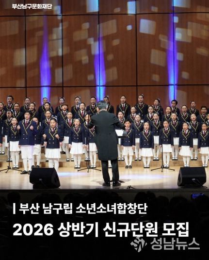 (성남뉴스) (재)부산남구문화재단은 남구립 소년소녀합창단의 신규 합창단원을 2026년 3월 3일부터 3월 17일까지 모집한다고 밝혔다.