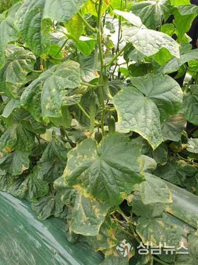 도 스마트농업본부에 따르면 최근 기온 상승으로 낮 동안 시설하우스 측창을 개방하는 농가가 늘었는데, 이때 스마트팜 내 갑작스럽게 찬바람이 유입되면 오이 등 박과류 작물이 스트레스로 인한 ‘급성 노균병’에 걸릴 수 있다.