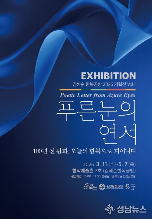 (성남뉴스) 순천문화재단이 운영하는 창작예술촌 2호 김혜순한복공방에서 3월 11일부터 5월 7일까지 기획전 '푸른 눈의 연서(戀書)'를 개최한다.