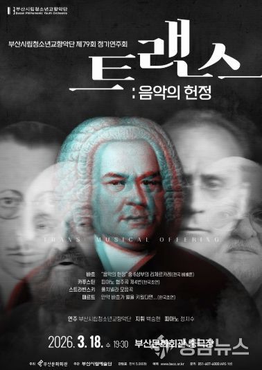 (성남뉴스) 부산시립청소년교향악단(예술감독 백승현)의 제79회 정기연주회 '트랜스: 음악의 헌정'이 3월 18일 오후 7시 30분 부산문화회관 중극장에서 열린다.