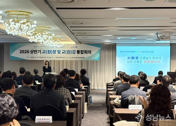 (성남뉴스) 김포교육지원청은 3월 10일 관내 학교 관리자들을 대상으로 ‘2026학년도 상반기 교(원)장·교(원)감 통합회의’를 개최했다고 밝혔다.