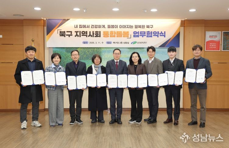 (성남뉴스) 대구 북구청은 3월 11일 북구형 통합돌봄 지역특화사업 추진을 위해 지역 의료․돌봄․복지 관련 기관 8개소와 업무협약을 체결했다.