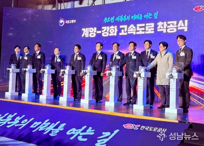 (성남뉴스) 계양-강화 고속도로가 착공하면서 수도권 서북부 광역교통망 구축 사업이 본격적인 추진 단계에 들어섰다. 김병수 시장은 12일 인천 강화군 선원면 강화군생활체육센터에서 열린 ‘계양-강화 고속도로 건설사업’ 착공식에 참석해, 차질없는 사업 추진을 다짐했다.