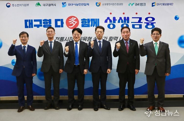(성남뉴스) 대구신용보증재단은 지역 전통시장·골목상권 활성화를 위해 대구경북지방중소벤처기업청, 대구광역시 등 6개 기관 및 단체와'대구형 다(多)함께 상생금융 업무협약'을 체결했다고 밝혔다.