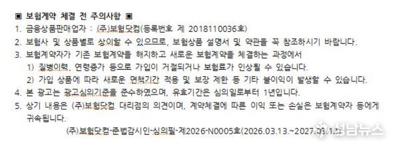 (성남뉴스) 흔히 3대질병이라 일컫는 암, 심혈관질환, 뇌혈관질환은 통계청 발표자료에 따르면 한국인의 주요 사망원인 중에서 3위 폐렴을 제외하고 1~4위를 차지하고 있으며, 이전부터 지금까지도 살면서 가장 먼저 대비해야 하는 치명적인 질병으로 강조되고 있다. 이러한 중대질병에 대비하기 위하여 상기 세가지 치명적인 질병을 집중보장하는 3대질병진단비보험을 많이 가입하고 있다. 3대진단비보험은 각각의 질병을 중점적으로 보장하면서도 가입자 특성에 맞는 특약을 추가함으로써 종합건강보험으로도 활용할 수가 있다.