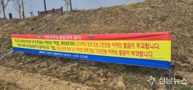 (성남뉴스) 안성시가 하천구역 내 불법 점용 행위를 뿌리 뽑고 무단 경작을 예방하기 위해 관내 지방하천 일대에 ‘경작 금지’ 홍보 현수막을 설치하고 집중 점검에 나섰다.