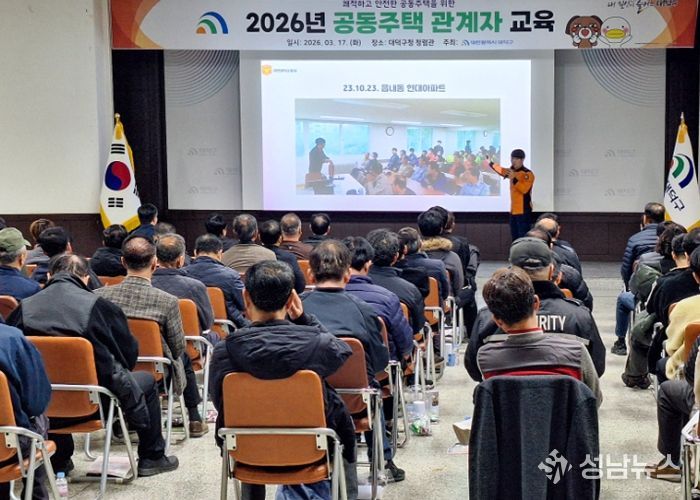 (성남뉴스) 대전 대덕구는 17일 구청 청렴관에서 공동주택 경비책임자와 시설물 안전관리자 등 100여 명을 대상으로 ‘2026년 공동주택 관계자 교육’을 진행했다.