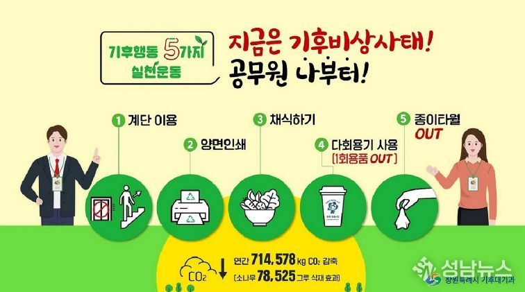 (성남뉴스) 창원특례시는 기후위기 대응과 탄소중립 사회 실현을 위해 공직자가 앞장서는 ‘2026년 공무원 나부터 탄소중립 실천 운동’을 추진한다고 밝혔다.