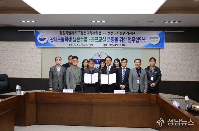 (성남뉴스) 강원특별자치도정선교육지원청과 정선군시설관리공단(이사장 유영수)은 3월 17일에 업무협약을 체결했다.